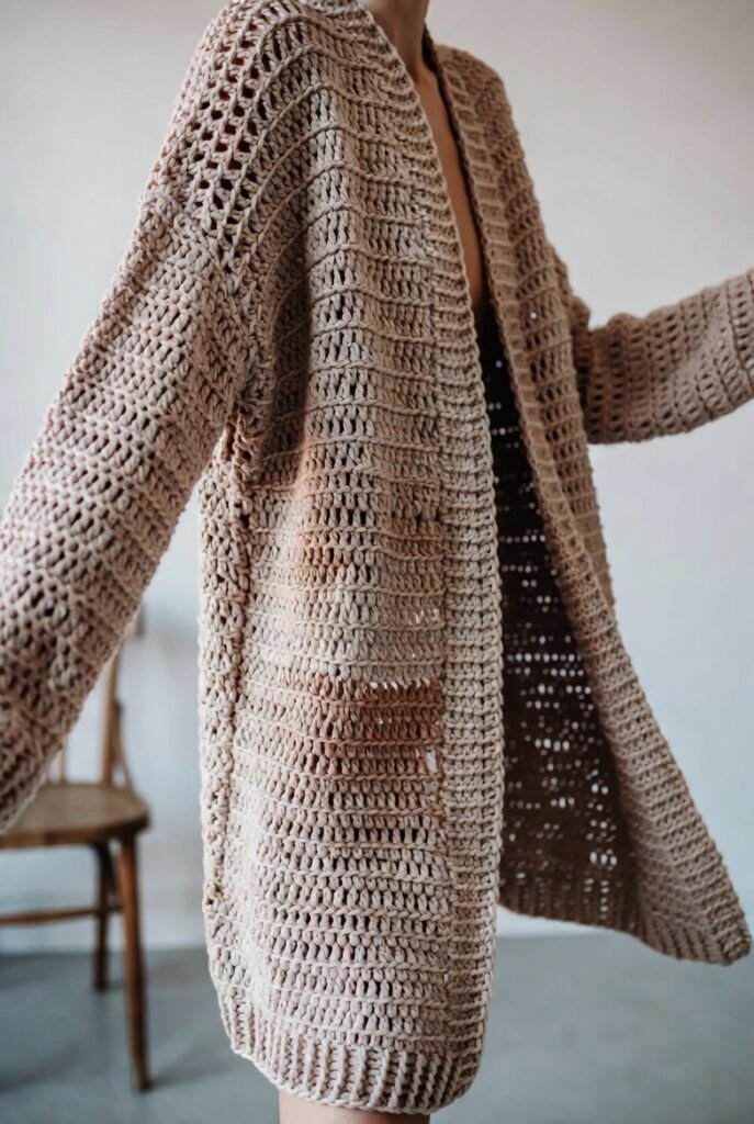 • Optionally, add single crochet edging at the hem and sleeve cuffs.