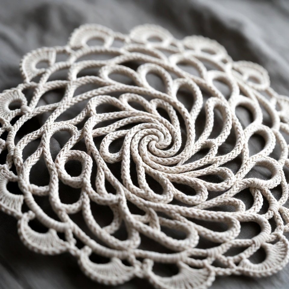 Begin with a standard round base, then introduce increases on one side of each round to create the swirling effect. Tall stitches and chain spaces enhance the movement. Blocking is essential to define the swirl clearly. This crochet doily pattern adds a modern touch to classic lace designs.