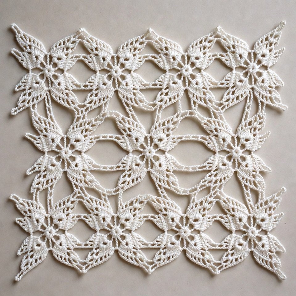 Using fine cotton thread, begin with a tight circular base. Gradually introduce lace stitch combinations such as shells, picots, and chain arches. This traditional crochet doily pattern focuses on stitch definition and balance. Work slowly and evenly for the best results. Light steam blocking opens up the lace and gives the doily its elegant finish.