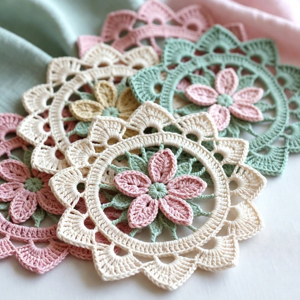 Crochet doilies are decorative lace pieces, traditionally made with cotton thread and worked in the round. Modern designs now include oval, rectangular, pineapple, floral, and mandala-inspired patterns.